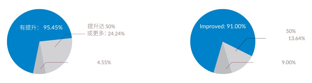 95.45%的项目参与者认为全能验配人才项目的学习对成交率提升有帮助,其中24.24%的学员认为提升率达50%甚至更多